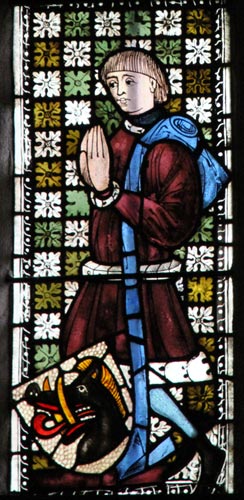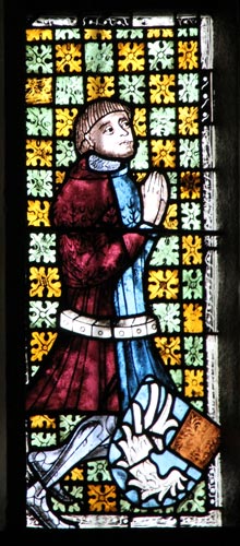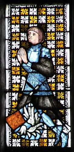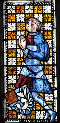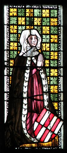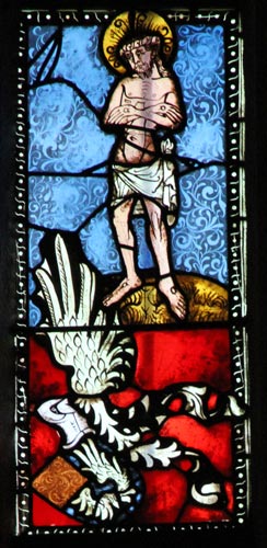 Eine einzige Frauendarstellung wird mit dem Wappen der von Rosenberg (rot-silbern geteilt und fünfmal gespalten) abgebildet. Ein weiteres Fenster zeigt eine männliche Person mit dem Wappen der von Reischach (in Silber ein schwarzer Eberkopf mit Hals, mit goldenen Hauern und mit goldenen Rückenborsten, rotgezungt). Weitere Fenster zeigen eine Madonna mit Kind, einen Gekreuzigten mit Maria und Johannes, den hl. Georg mit der Lanze und den hl. Sigismund mit geschultertem Schwert. Ein weiteres Fenster trägt eine Muttergottes mit dem Vollwappen der von Neipperg (in Rot drei (2:1) silberne Ringe, auf dem Helm mit rot-silbernen Decken ein wie der Schild bez. Flug).
