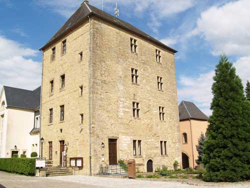 Der Wohnturm, einer der schönsten und größten seiner Art, 1574-1585 unter Einbau größerer Fenster von Paulus von der Feltz und seiner Frau Apollonia von Kerpen wohnlich gemacht, vor allem durch Einbau größerer Kreuzstockfenster, immer wieder zerstört, 1975 wiederhergestellt im ursprünglichen Stil von 1585. Er repräsentiert einen Mischtypus an der Grenze zwischen deutscher und französischer Burgenbautradition. Im Inneren befindet sich im großen Rittersaal, der den ganzen zweiten Stock einnimmt, ein Renaissance-Prunkkamin mit den Wappen von der Feltz / von Kerpen, die 16 Wappen der Ahnenprobe zieren den Saal (i. d. R. nicht zu besichtigen, seine Eltern: Georg von der Feltz und Eva von Soetern, seine Großeltern: Arnold von der Feltz, Anna Maria von Püttlingen, Adam von Soetern und Franziska d'Orley, ihre Eltern: Heinrich von Kerpen und Catharina Schenk von Schmidtburg, ihre Großeltern: Bernhard von Kerpen, Elisabeth von Wolffstein, Nicolaus Schenk von Schmidtburg und Elisabeth von Schwarzenberg). 1957 kaufte die Gemeinde die Burg aus privater Hand, 1960 ging die Burg an den luxemburgischen Staat, wurde aber 1988 zurückgetauscht und kam erneut in Gemeindeeigentum. Seit 1993 ist der Wohnturm Sitz der städtischen Verwaltung.