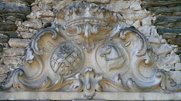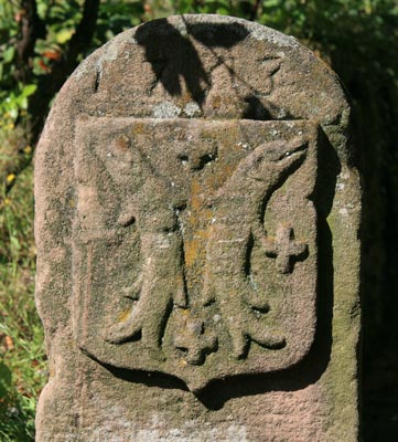 Im Hof befindet sich neben der Einfahrtsrampe zu einem Nebengebäude ein auf 1713 datierter Grenzstein mit dem Salm-Wappen: In Rot zwei pfahlweise gestellte, gekrümmte, mit dem Rücken einander zugewandte silberne Salme, bewinkelt von vier (1:2:1) silbernen oder goldenen Kreuzchen. Die Kreuzchen von Obersalm waren ursprünglich wohl golden, als es die alten Grafen von Salm noch gab, werden aber bei rheingräflichen Wappen meist silbern angegeben. Bei heutigen Darstellungen des fürstlichen Hauses Salm werden sie golden angegeben.