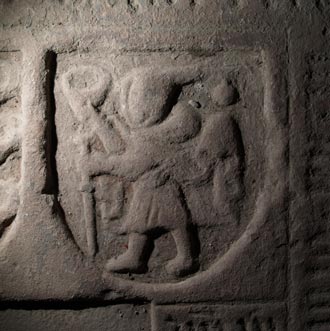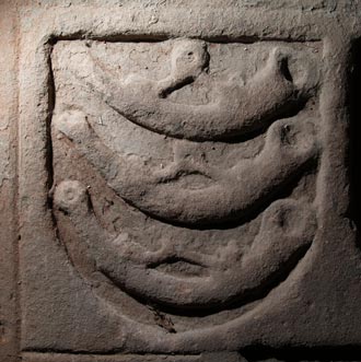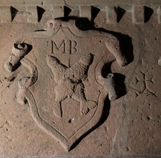 Diese Platte besitzt zwei Wappen. Das optisch linke ist das