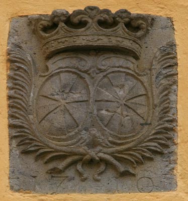 befindet sich dieser barocke Wappenstein, ein Allianzwappen mit
