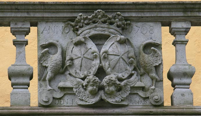 Wappen an der Stirnseite des Südflügels