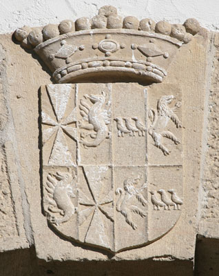 Wappen an der Balkonbrüstung über dem Eingang zur Hauptburg