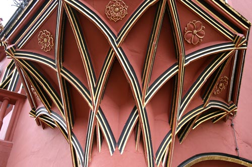 Reichtum dieses Gebäudes ist an den beiden Erkern angebracht.