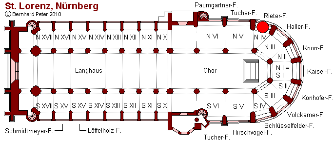 St. Lorenz: Schmidtmayer-Fenster - St. Lorenz: Löffelholz-Fenster - St. Lorenz: Haller-Fenster - St. Lorenz: Rieter-Fenster - St. Lorenz: Knorr-Fenster - St. Lorenz: Fenster mit Patrizierwappen auf der Südseite, 1. Teil - St. Lorenz: Fenster mit Patrizierwappen auf der Südseite, 2. Teil - St. Lorenz: Fenster mit Patrizierwappen auf der Südseite, 3. Teil - St. Lorenz: Fenster mit Schnöd-Wappen - St. Lorenz: Fenster mit Muffel-Wappen - St. Lorenz: Kaiser-Fenster - St. Lorenz: Wappenmedaillons im Fenster "Süd XII" (1) - St. Lorenz: Wappenmedaillons im Fenster "Süd XII" (2) - St. Lorenz: Wappenmedaillon im Fenster "Süd X" - St. Lorenz: Wappenmedaillon im Fenster "Nord XI" - St. Lorenz: Wappenmedaillon im Fenster "Nord VI" - St. Lorenz: Wappendarstellungen im Fenster "Süd XI" - St. Lorenz: Wappendarstellungen im Fenster "Nord XIII" - St. Lorenz: Wappendarstellungen im Fenster "Nord XVI" - St. Lorenz: Totenschilde