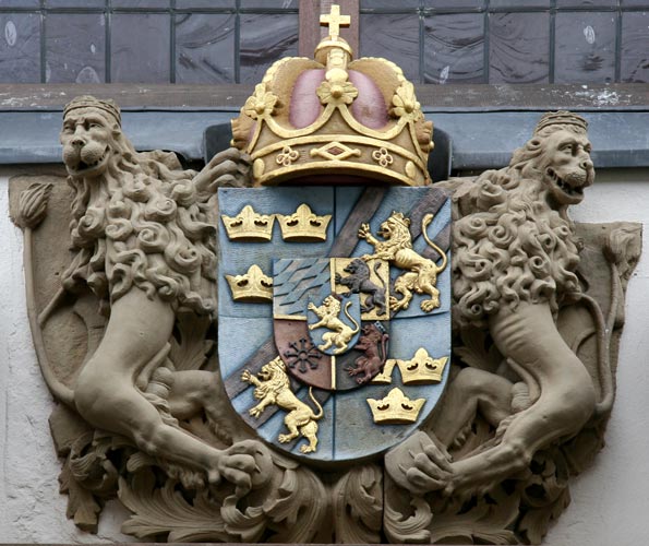 gekrönte Löwen mit etwas unharmonischer Anatomie.