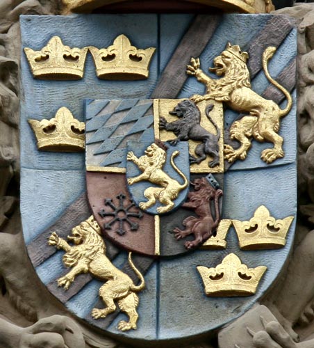 unterste Schild, der Hauptschild, für das Königreich Schweden