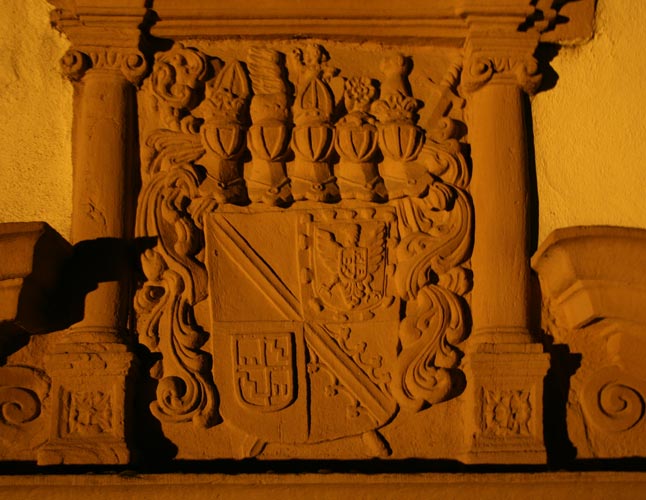 Das Haus wurde 1560 unter dem Straßburger Fürstbischof Erasmus Schenk von Limpurg (reg. 1541-27.11.1568) auf älteren Fundamenten erbaut, und daran erinnert das Wappen des Bauherrn an der östlichen Giebelspitze zum Marktplatz hin. Eine barocke Erneuerung fand unter Fürstbischof Franz Egon von Fürstenberg (1663-82) statt, und dabei wurde die doppelläufige Freitreppe an der Nordseite nebst wappengeschmücktem Portal errichtet (die Abb. zeigt das Wappen in nächtlichem Scheinwerferlicht).