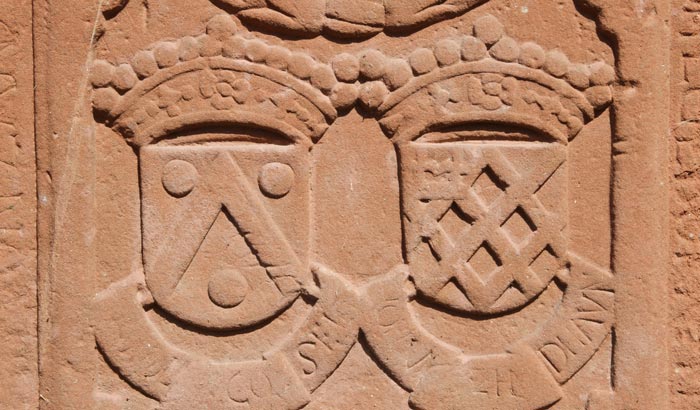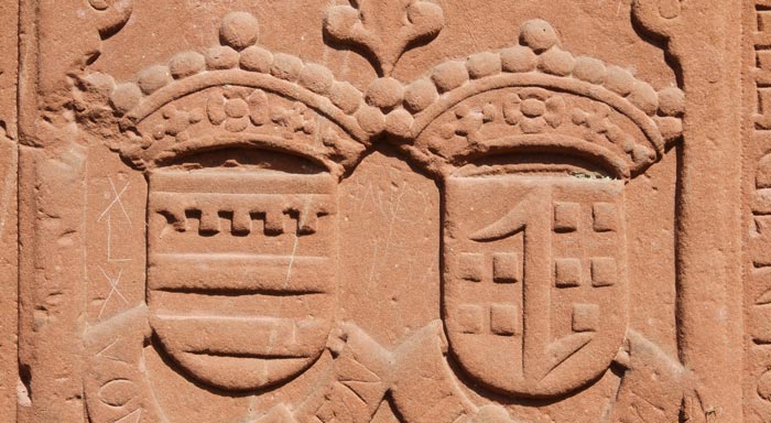 Wappen für Maria Catharina von Efferen, Ehefrau des Johann Godfried Zandt von Merl, auf 1660 datiert. Vermutlich handelt es sich um die gleiche Person wie die von der oben besprochenen Grabplatte.