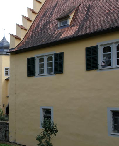 eingezogen. Die straßenseitige Schloßmauer hat einen Eckturm