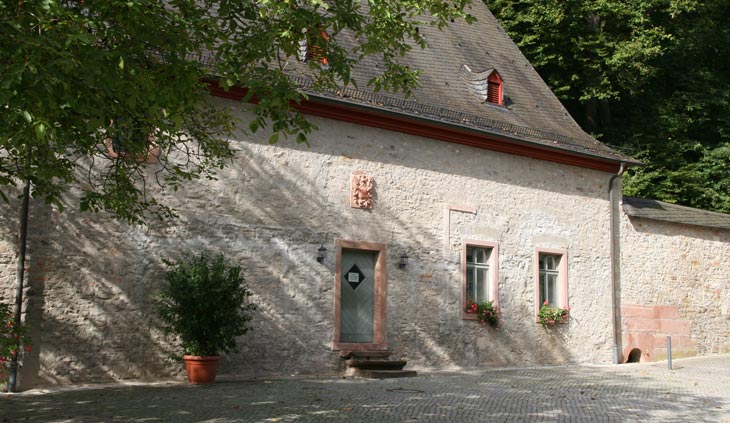 Ein weiterer Wappenstein dieses Abtes befindet sich an der Klosterschänke, das ist ein eingeschossiger, langgestreckter Massivbau mit Krüppelwalmdach. Der Bau befindet sich im Südwesten der Klosteranlage nahe der Außenmauer am bewaldeten Westhang des Tales, erhöht über dem Zugangsweg, und von hier hat man einen hervorragenden Blick auf die tiefer liegende Klosterkirche. Früher handelte es sich um ein Wirtschaftsgebäude mit Stallungen (Marstall) und angrenzender Scheune, heute ist hier ein Restaurant eingerichtet, und im rechten Teil sind noch weitere 8 Gästezimmer.