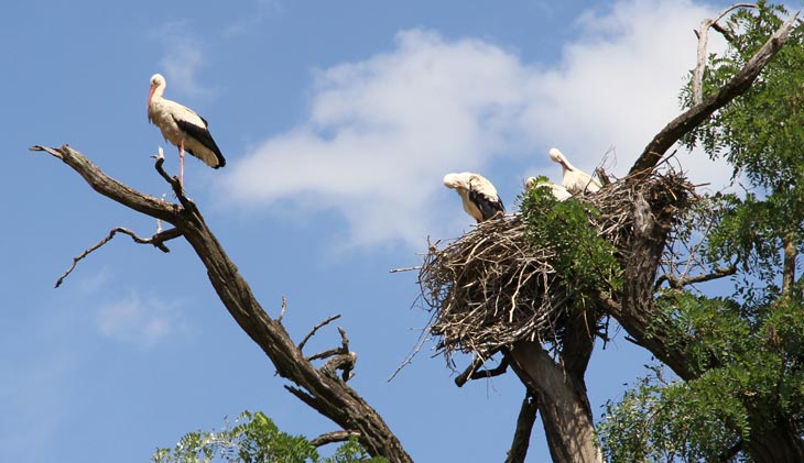 Untrennbar mit Schloß Marchegg verbunden sind die Störche, die in den Bäumen des Schloßparks und auf dem Dach des Schlosses nisten. In den sich nordwestlich an das Schloßgelände anschließenden Auen des Naturreservates Marchegg ist eine der größten Weißstorchkolonie Europas zu Hause. Jedes Jahr kommen ca. 70-100 Störche hierher.