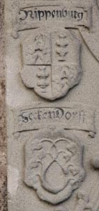 Die vier Großeltern waren Hans Ernst von Wollmershausen (-22.9.1561, bei Damian Hartard von Hattstein: Hans Philipp von Wollmershausen), Clara von Nippenburg (-1556, bei Damian Hartard von Hattstein: Anna Maria von Nippenburg), Conrad von Rosenberg (-1581) und Kunigunde von Seckendorff gen. Pfaff. Die beiden unteren Schilde sind bis zur Unkenntlichkeit verwittert, man würde heraldisch rechts unten den Nippenburg-Schild und links unten den Seckendorff-Schild wie oben beschrieben erwarten.