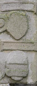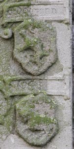 Die Wappenschilde auf der heraldisch rechten Seite sind entsprechend von oben nach unten:
