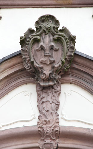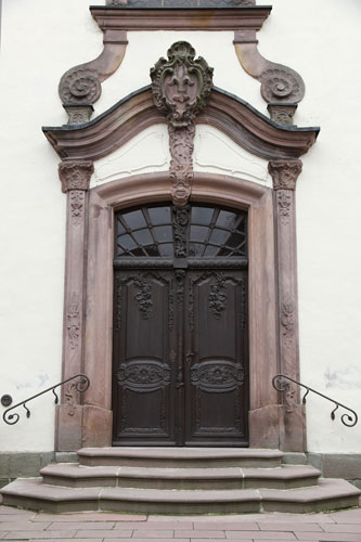 Eingangsportal innerhalb einer großartigen Rokoko-Kartusche das