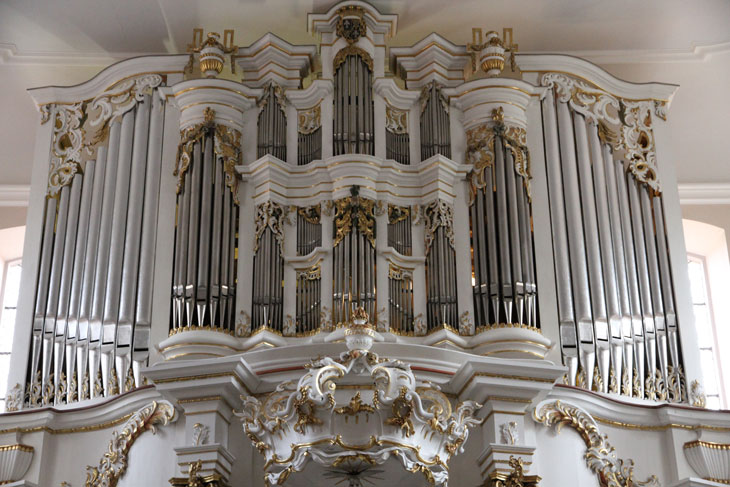 Abb.: Orgelprospekt, unten Schalldeckel der Kanzel