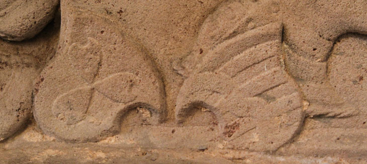 Schlußstein des Portals, wechselt dann das Material und setzt