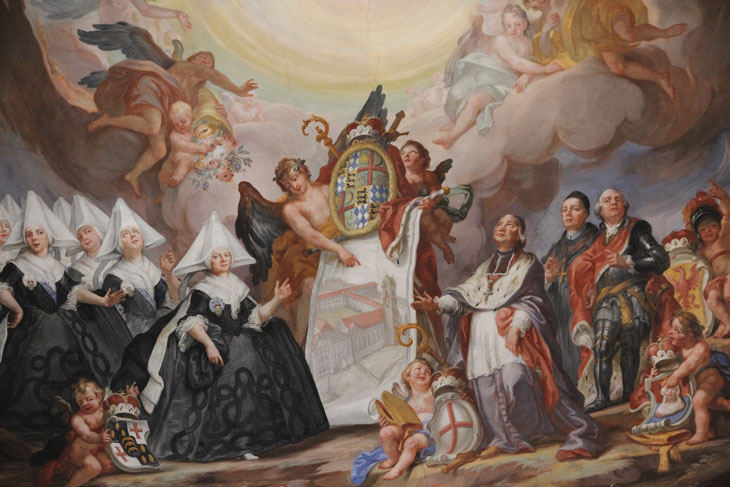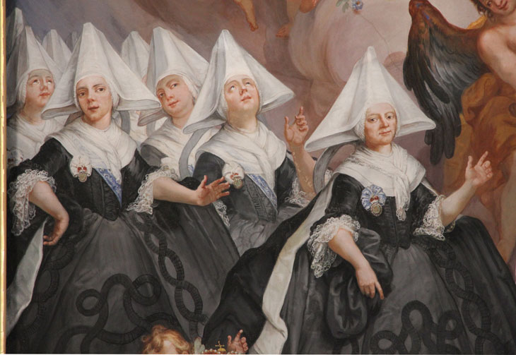 vorderster Stelle in der Gruppe wird die Äbtissin im Gemälde