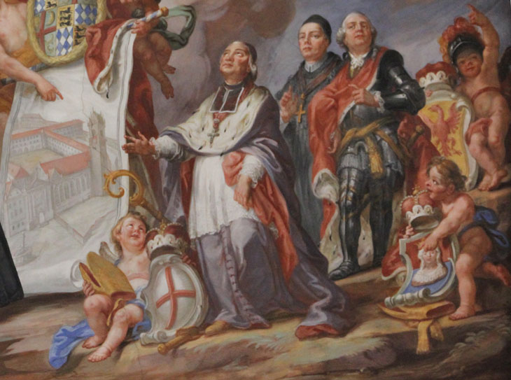 Bauplan und der amtierenden Fürstäbtissin halten zwei Engel ein