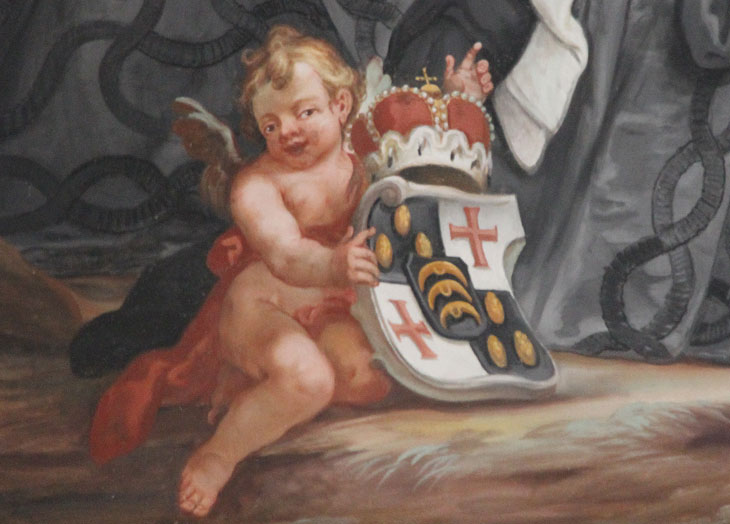 aufkommen, zeigt der kleine Putto, der seine Aufgabe als