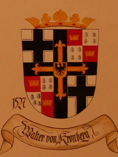 Von Walter von Cronberg an werden solchermaßen gevierte Wappen verwendet. Dieser Wechsel in der Darstellung trägt auch der Tatsache Rechnung, daß bei den frühesten Vertretern gevierte Wappen noch nicht allgemein gebräuchlich waren und diese Mode sich erst entwickelte. Erst seit Friedrich von Sachsen verbanden die Hochmeister im Siegelbild Amts- und Familienwappen in einem Schild, vorher verwendeten sie separate Schilde. Wir - und ebenso historische Wappenbücher wie das von Hans-Georg Boehm publizierte - neigen dazu, dieses gevierte Schema rückwirkend auch auf die ganz frühen Hochmeister zu projizieren. Wir müssen aber davon ausgehen, daß bei den frühesten Vertretern gevierte Wappen noch nicht allgemein gebräuchlich waren und diese Mode sich erst entwickelte. Vermutlich haben daher die frühen Hochmeister entweder den Deutschordensschild bzw. Hochmeisterschild oder den Familienschild verwendet oder beide nebeneinandergestellt. Auch gab es bei den frühen Hochmeistern Bestrebungen, sich auf den Ordensschild zu beschränken und das Familienwappen in den Hintergrund treten zu lassen oder ganz darauf zu verzichten, weil die hundertprozentige Identifikation mit dem Orden im Vordergrund stand. Deshalb haftet sämtlichen nachträglich entstandenen Kompilationen der Hochmeisterwappen, insbesondere denen mit durchgehend gevierten Wappen, eine Künstlichkeit an, die wenig mit der Praxis des 13. und 14. Jh. gemeinsam hat. Erst mit der aufkommenden Lust an gevierten Wappen wurde die Quadrierung aus Deutschordensschild und Familiensymbol zur Selbstverständlichkeit.