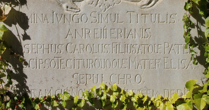Zwischen der Pfarrkirche St. Michael und dem Dom liegt der alte Friedhof der Pfarrei Brixen. Der hier beschriebene Grabstein ist an der Nordseite aufgestellt, an der Außenwand der Pfarrkirche. Soweit nicht überwachsen, lautet der lesbare Teil der Inschrift: "NOMINA IVNGO SIMUL TITULIS / ANREIttERIANIS / IOSEPHUS CAROLUS FILIUS ATQUE PATER / HOC IPSO TEGITUR QUOQUE MATER ELISA / SEPULCHRO / ...".
