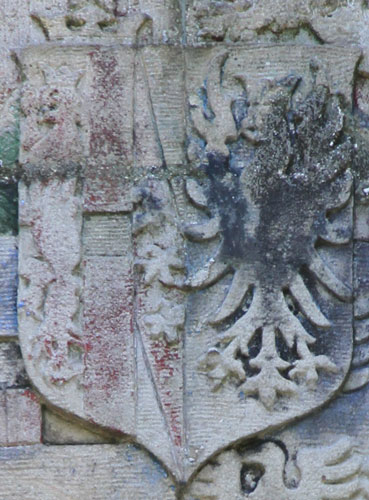 hatte. Neben diesem wappengeschmückten Tor im historistischen,