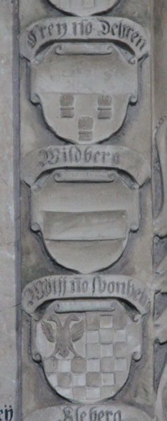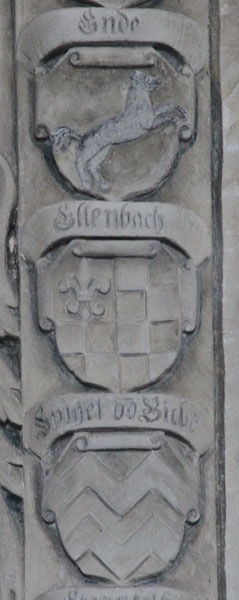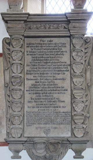 Übrigens - die in der Literatur zu findende Angabe, das Epitaph hätte 20 Ahnenwappen, ist irrig und außerdem per se unlogisch, es handelt sich statt dessen um 16 Ahnenwappen, ein Ehewappen und ein Ehewappen von Tochter und Schwiegersohn, welche dieses Epitaph aufstellen ließen.