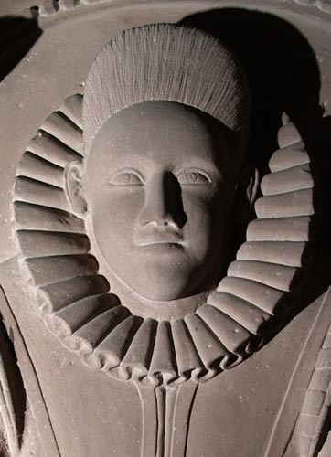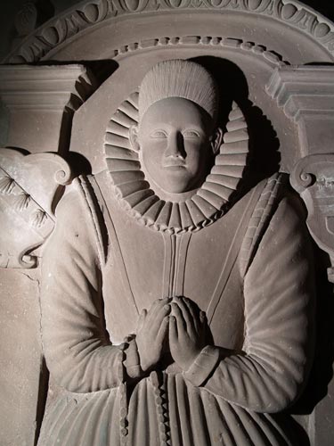 Für Elisabeth de Heu gibt es ein sehr qualitätvolles Epitaph und eine Grabplatte mit identischem Wappenprogramm in der Kirche Saint-Hubert. Elisabeth de Heu (-29.6.1599), dame de Clervaux, an die hier erinnert wird, hatte am 22.2.1563 Gottfried Graf zu Eltz (-1614) geheiratet, Herr zu Wolmeringen und von der Hälfte von Üttingen, Herr von Underich, Clerf und Küneringen, Sohn von Bernhard von und zu Eltz, Herr zu Wollmeringen und Üttingen, und Margareta von Boineburg zu Hohenstein.