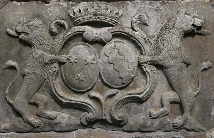 besteht aus zwei ovalen Wappenkartuschen. Die heraldisch rechte