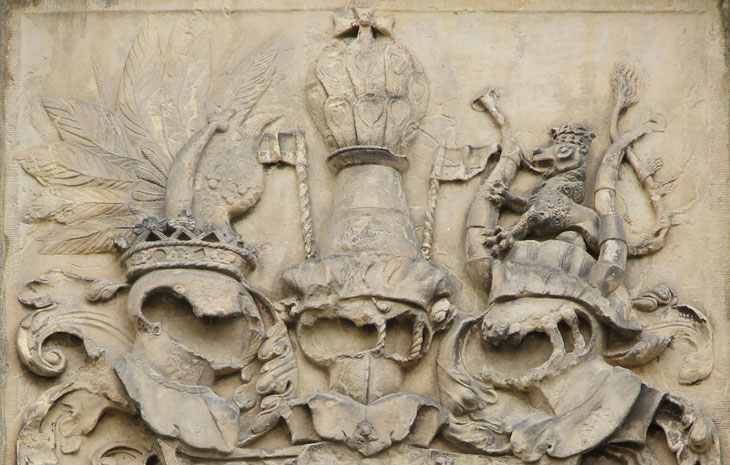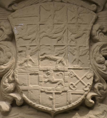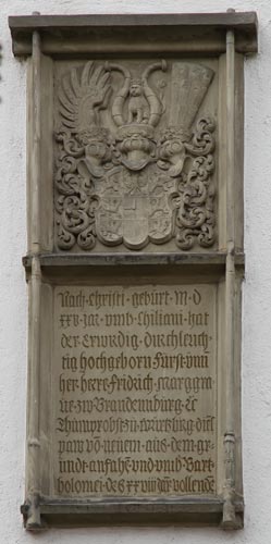 Bildbeispiel: Stiftskirche Aschaffenburg, Gedächtnisanlage für Albrecht von Brandenburg, Einzelwappen für die Grafen von Hohenzollern und das Burggrafentum Nürnberg.