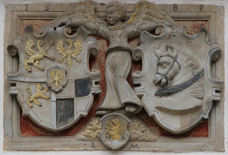 Segnitz (Landkreis Kitzingen, Unterfranken), markgräfliches Amtshaus, 1608 erbaut unter Markgraf Joachim Ernst von Brandenburg-Ansbach (22.6.1583-7.3.1625).