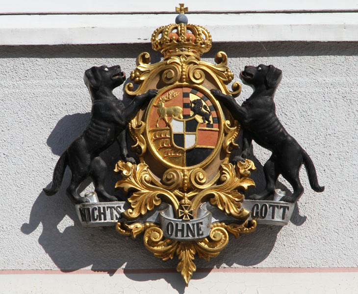 neobarockem Stil erbaut. Wappen mit Fürstenkrone.