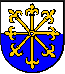 mit einer goldenen Lilienhaspel (Glevenrad). Helmzier eine