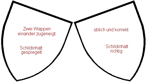 Es ist eine heraldische Unmöglichkeit, den Schild nach rechts zu neigen und den Helm nach links blicken zu lassen! Die Kombination Schild in die eine Richtung, Helm um 180 Grad gedreht in die andere Richtung ist ein heraldischer Super-GAU und widerspricht sämtlichen Konventionen. Das sollte eigentlich eine Selbstverständlichkeit sein, aber die an Heraldiker herangetragenen Vorstellungen zeigen immer wieder, daß es leider wohl doch nötig ist, das mal explizit zu erwähnen.