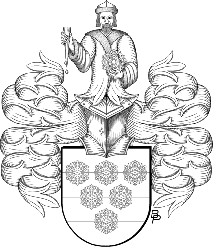 Symbolerklärung: Der Name "Winter" bietet sich an, ein redendes Wappen zu schaffen. Die Assoziation "Winter" wurde auf vielfältige Weise umgesetzt: Das Schildbild enthält als Schlüsselmotiv den Schneekristall in typischer hexagonaler Symmetrie, in vermehrter Anzahl, um Schneefall zu suggerieren. Der gleiche Schneekristall taucht in der Helmzier auf, ergänzt durch einen Eiszapfen als zweites winterliches Motiv, beides gehalten von einem Mann in winterlich an Ärmeln, Kragen und Rand mit Pelz besetztem Mantel, der dritten winterlichen Assoziation. Die Farben Blau und Silber sind ebenfalls mit der Assoziation kalter, winterlicher Farben bzw. dem Weiß des Schnees verbunden. Weiterhin sind die Schneekristalle im Schild so angeordnet, daß man die Anfangsbuchstaben "Wi" des Nachnamens hineinlesen kann: Während die oberen 3:2 Schneekristalle gedanklich zu einem "W" verbunden werden können, bilden die beiden mittleren in der Senkrechten das "i" mit dem Punkt. Für die Detailgestaltung des komplexen Motivs im Schild wurde eine Darstellung gewählt, die mit insgesamt nur drei durchgehenden Linien auskommt. Jede der Linien geht ununterbrochen und in einem einzigen Zug vom linken zum rechten Schildrand. Durch diesen Trick des Ausziehens von Linien zu komplexen Formen wird ein uraltes Prinzip der Heraldik aufgegriffen, das der Schnitte mit inverssymmetrischen Teilbildern zu beiden Seiten der fiktiven Teilungslinie, die beide zusammen das Ganze ergeben, aber durch die Zeichnung mit einer einzigen Linie die beiden jeweils angrenzenden Farbflächen untrennbar miteinander verbinden.