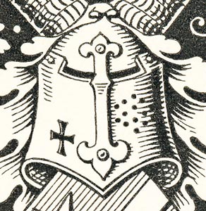 Abb.: Helmgestaltung von Georg Otto (6.9.1868-17.5.1939) (Exlibris von 1900 für Melanie Gräfin von Seckendorff).