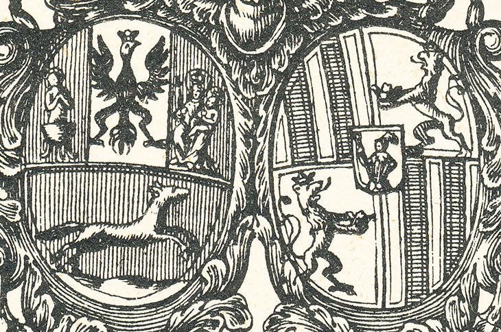 gedrehten Randsäule. Der Schild ist innerhalb eines goldenen