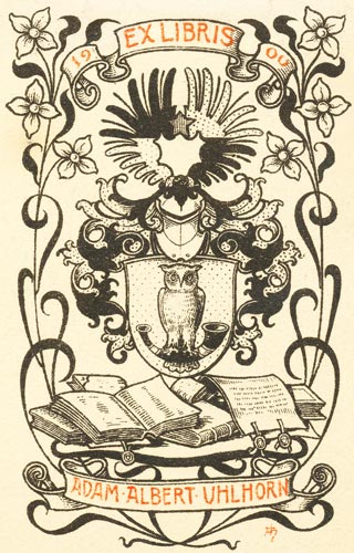 Exlibris ganz rechts unten. Der Eigner lebte vom 15.9.1856 bis
