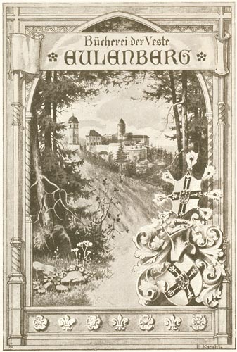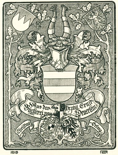 Streifen verteilte Inschrift lautet: "Aus der Bücherei von