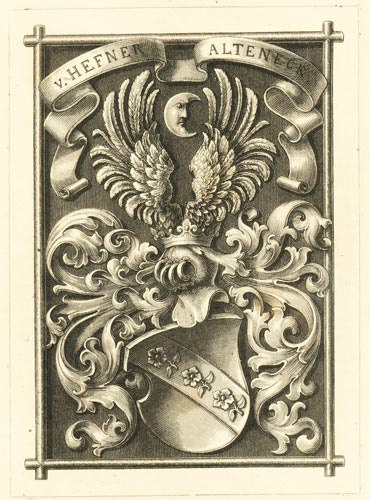 1814 wurde Franz Ignaz Heinrich Hefner (1756-1846) von König Max I von Bayern geadelt. Am 18.3.1854 erlaubte König Max II dessen Sohn Jakob Heinrich von Hefner (1811-1903) dem Familiennamen "Alteneck" anzuhängen. Er war Konservator der Königlichen Vereinigten Kunstsammlungen und des königlichen Kupferstich- und Handzeichnungskabinetts sowie Konservator des Historischen Vereins von Oberbayern. Er wurde Generalkonservator der Kunstdenkmäler Bayerns und Direktor des Bayerischen Nationalmuseums. Daneben war er selbst als Zeichner und Radierer tätig.