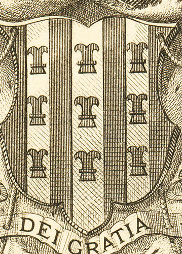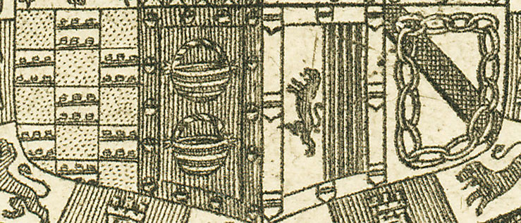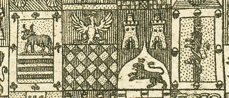 Stier, 1 Adler, 8 Kleeblätter und 13 kleine Schildchen. Die
