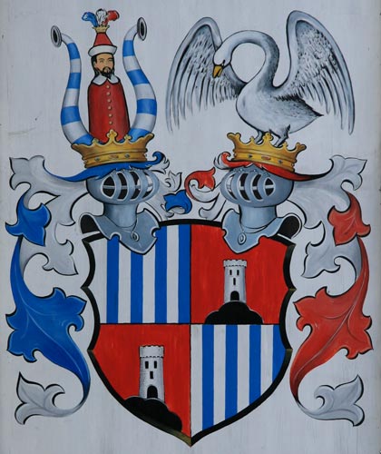 gekrönten Helm mit blau-silbernen Decken einen wachsenden, rot