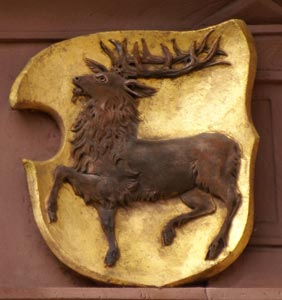 Abb. links: Stammwappen Stolberg am Erbacher Schloß, am Eingang zur Rentkammer, wiederaufgebaut 1893. Es steht hier dort für Erika Juliana Prinzessin zu Stolberg-Stolberg (15.7.1856 - 20.3.1928), Tochter von Alfred Fürst und Graf zu Stolberg-Stolberg (23.11.1820 - 1903) und Augusta Amalia Ida Prinzessin zu Waldeck (21.7.1824 - 4.9.1893). Abb. Mitte und rechts: Zeichnung von Otto Hupp für den Münchener Kalender 1896.