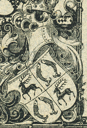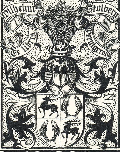 Abb.: Ausschnitt aus einem auf 1893 datierten heraldischen Exlibris, entworfen von Adolf M. Hildebrandt (1844-1918) für Wilhelm Prinz von Stolberg-Wernigerode.
