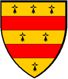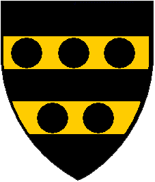 Montabaur um 1340 Unter goldenem Schildhaupt in Schwarz sechs (3:2:1) goldene Steckkreuze. |
