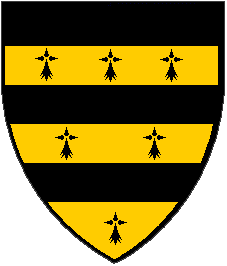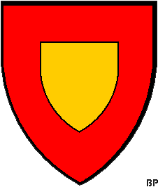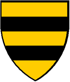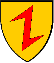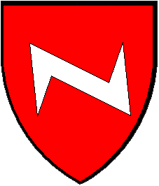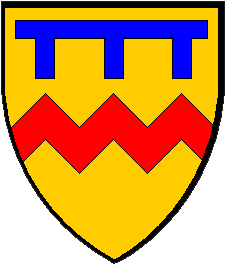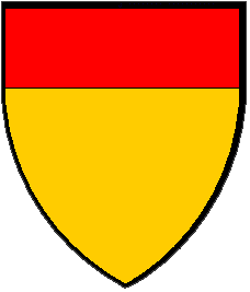 1381 In Gold ein roter Sparrenbalken, überhöht von einem blauen dreilätzigen Turnierkragen. Helmzier ein beiderseits wie der Schild bezeichneter offener Flug. Helmdecke rot-golden. |