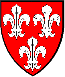 von Treis, Clais Stetzgis von Treis 1478 In Rot drei (2:1) silberne Lilien. Helmzier ein wie der Schild bezeichneter offener Flug. Helmdecke rot-silbern. |