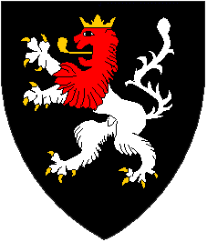 In Schwarz ein golden gekrönter und bewehrter silberner Löwe mit roter Mähne und rotem Kopf. Helmzier: Ein schwarzer offener Flug, beiderseits belegt mit einem golden gekrönten und bewehrten silbernen Löwe mit roter Mähne und rotem Kopf. Helmdecken schwarz-silbern. Anm. : Nach Gruber ist die Helmzier der Löwe wachsend zwischen einem wie der Schild bez. Flug - offensichtlich ein Fehler.